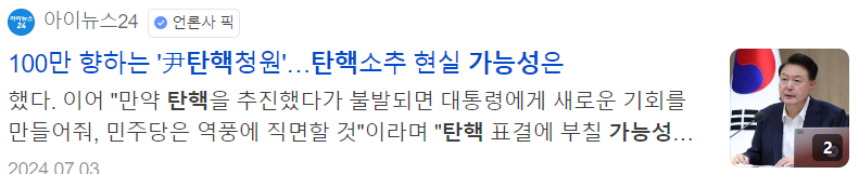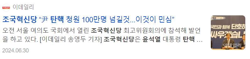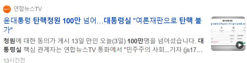 | 윤석열 대통령 탄핵 국회 청원 링크 사이트| 대기 없이 바로하는 방법 (2) | 2024.07.01 |
