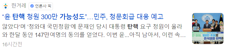 | 윤석열 탄핵 청원 사이트 100만가나? 실시간 청원 동의수 사이트 탄핵멍 (1) | 2024.07.02 |
