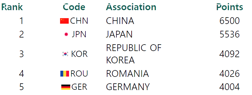 파리올림픽 여자탁구 세계랭킹