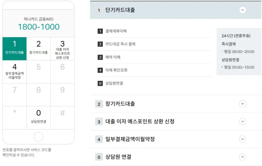 하나카드 고객센터 1800-1111로 전화를 하고 아래 내용 중에서 해당하는 번호를 누르면 됩니다.