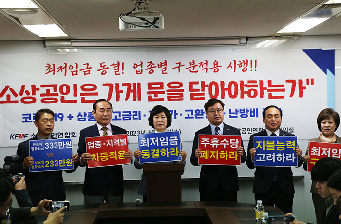 소상공인은 최저임금의 일률적인 적용으로 인한 부담을 감당할 여력이 없으며 고용 유지와 서비스 경쟁력의 확보를 위해 최저임금의 차등 적용이 반드시 필요하다고 주장했습니다.