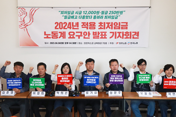 노동계는 2024년 최저임금 1만2000원 실현을 위해 "모두를 위한 최저임금 1만2000원 운동본부"를 출범하고 대대적인 최저임금 인상 촉구 운동을 벌이고 있습니다.