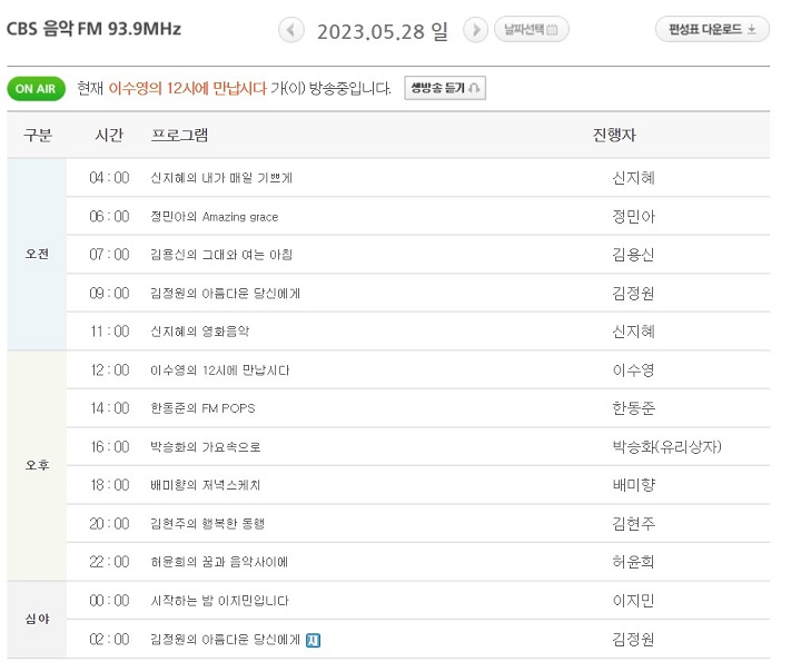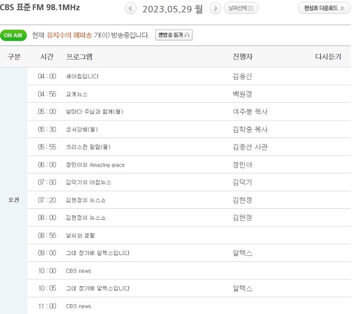 CBS 라디오 편성표