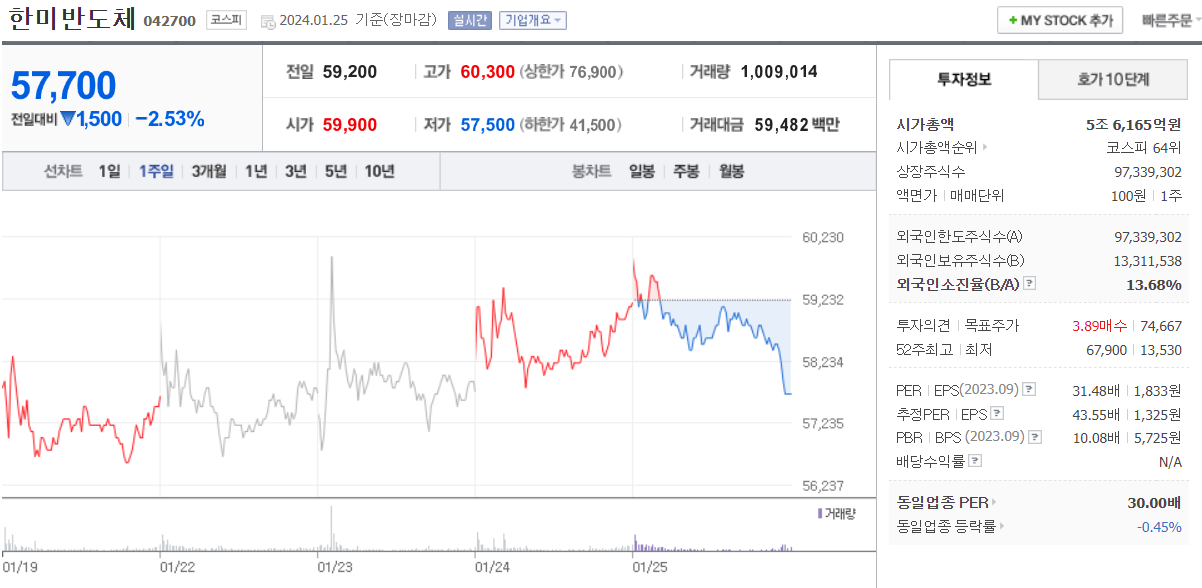 한미반도체 (HBM반도체 후공정 관련주)