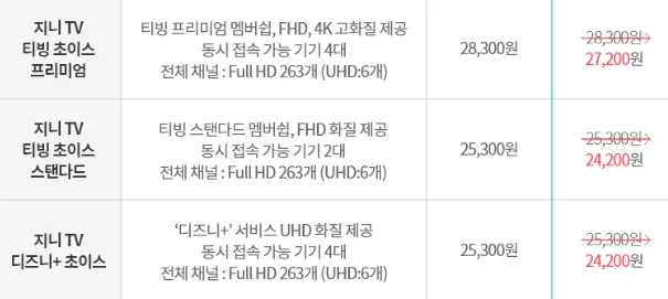 KT 지니TV 결합 요금제에는 넷플릭스 대신에 티빙이나 디즈니플러스를 결합해서 사용할 수도 있으니 티빙이나 디즈니플러스를 저렴하게 이용하고 싶은 분들도 함께 알아보시면 좋을 것 같아요.