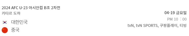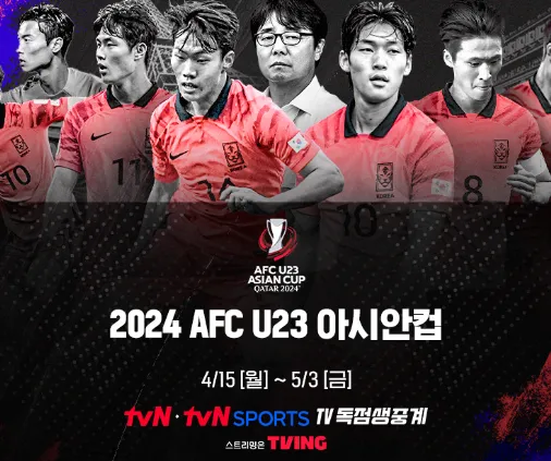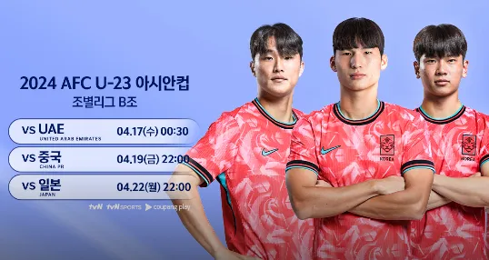 U23 아시안컵 축구 경기는 쿠팡플레이에서 전 경기를 중계해 줍니다. 그리고 TV에서는 tvN 채널에서 중계를 볼 수 있습니다.