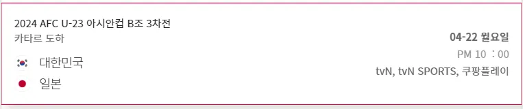 | B조 | 4.22.(월) | 22:00 | 일본 vs 대한민국 |