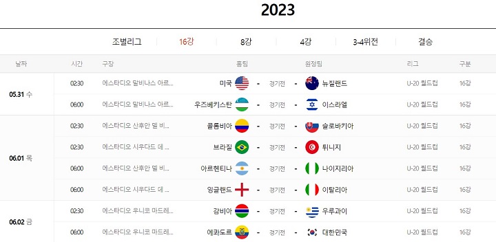 | 5월 31일 (수) | 02:30 | 미국 | 뉴질랜드 |
