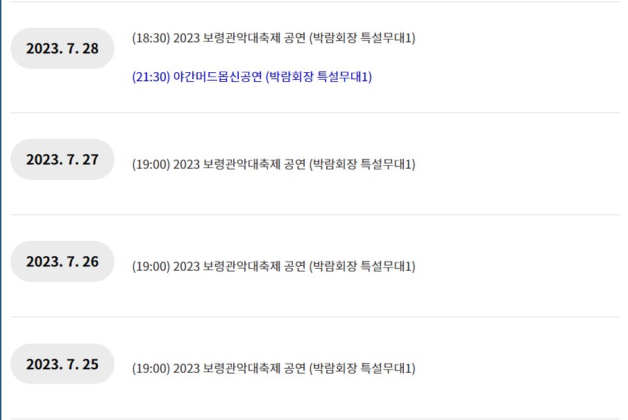 보령 머드축제 주요행사 일정표