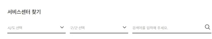 위의 버튼으로 쿠쿠 홈페이지에 들어가면 아래와 같은 화면이 나옵니다. 시/도 선택, 구/군 선택하고 돋보기 모양을 클릭하면 가까운 서비스센터가 나올 것입니다.