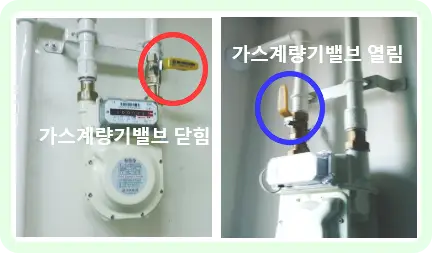 - 이사를 새로 온 경우나 가스레인지를 사용하지 않는 경우, 가스계량기에 있는 밸브가 열려 있는지 확인해보세요.